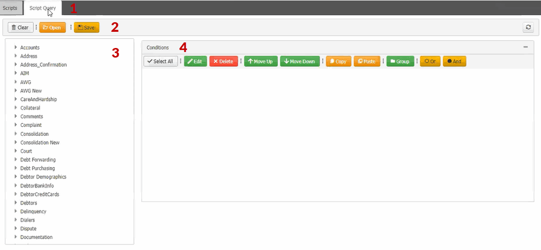 You can use the Script Builder tool to create scripts queries and scripts. You must have Access Script Builder Permission enabled to access Script Builder tab. Script Builder is used to configure verbiage that can be displayed when a panel is opened or the account is popped. You can have a base script and also conditional scripts