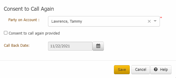 If the call back date is passed, then to reset the call again, select the Consent to call again provided check box.