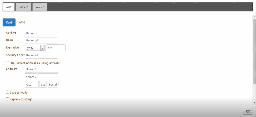 Use the Wallet tab in the Payment Instrument dialog box to prevent adding expired credit card details, setup payments past the expiry date of credit card and many more.