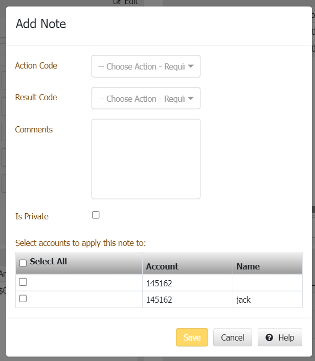 Select accounts to apply this note to: If selected one or Select All notes will be applied respective accounts.