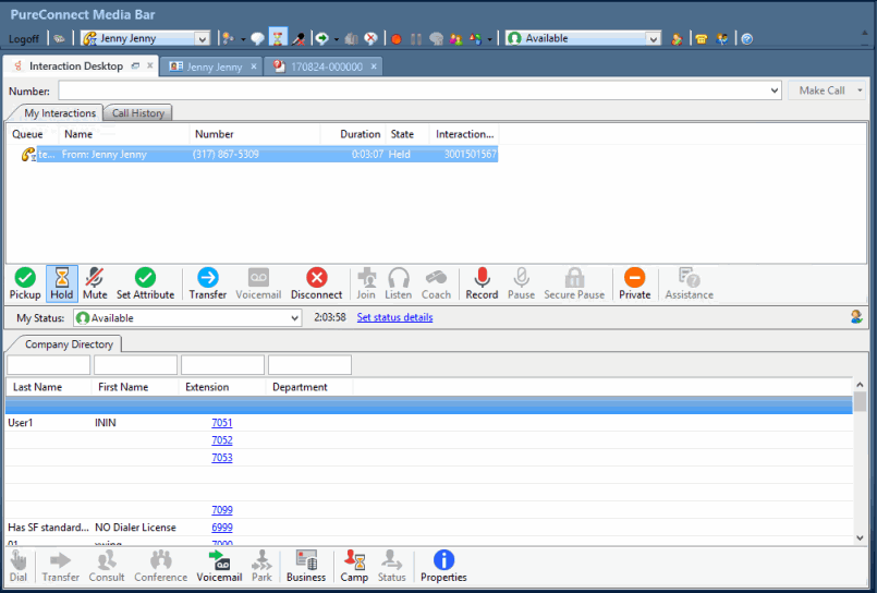 L'Intégration de PureConnect à Oracle Service incorpore Interaction Desktop à votre interface Oracle Service Cloud habituelle. Interaction Desktop est une application de gestion d'interactions puissante pour les ordinateurs de bureau et les ordinateurs portables. Utilisez Interaction Desktop pour gérer vos communications électroniques, notamment les appels téléphoniques, la messagerie vocale, les appels de conférence, les emails acheminés par ACD, ainsi que les chats Web.