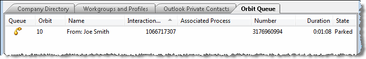 Les appels en orbite sont pris en charge sur une autre station. Cela vous permet de passer à une autre station et de reprendre l'appel sans avoir à le transférer vers un poste spécifique. Vous pouvez afficher et prendre les appels en orbite en affichant la vue File des orbites dans le client CIC. Pour plus d'informations, consultez la rubrique File des orbites.