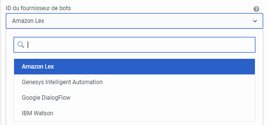 Sélectionnez le fournisseur approprié dans la liste déroulante Fournisseur du bot, puis développez la section appropriée ci-dessous pour obtenir des instructions de configuration.