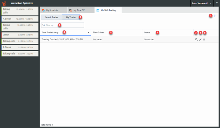 Use this view to manage your shift trade requests. You can edit or cancel any of your unmatched trade requests or your matched trade requests that are still pending approval.