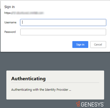 Note: This dialog box does not appear, if your CIC administrator configures your browser to enable Windows credentials to automatically pass to the CIC server. Also, the appearance of this dialog box varies according to the browser you use.