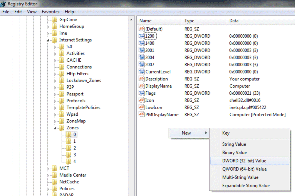 5. Then expand Software > Microsoft > Windows > CurrentVersion > Internet Settings > Zones.