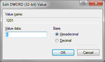 9. Double-click 1201 to open its properties. Make sure that its value is zero.
