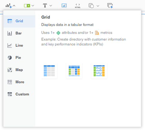 The MicroStrategy 2021 version has the addition of Shape with drop-down to select multiple shapes and a Panel Stack option to stack multiple visualization tabs together. This option is present in the center toolbar.