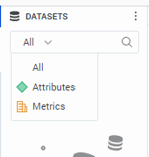 Current Visualization, Unused Derived Objects and other options are present. Also one can view all Metrices, Time and Geo Attributes, Custom Groups, Hierarchies and some more objects filter.