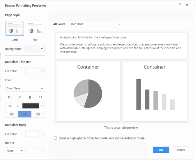 Along with the Fill Color option in the Container Body, an entry for the percentage of the color to be filled is included in the Fill Color section. This feature update can be witnessed at various places within the web application.