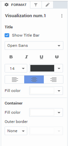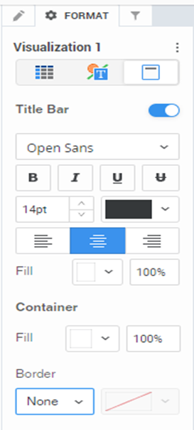 Visualization Options, Text and Form, Tiles and Container options are present separately inside the Format Panel in the latest version. It is not found in the panel for earlier MicroStrategy Web Application version.