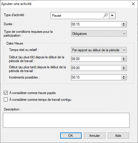 Cochez cette case si l'activité compte pour le temps de travail contigu. |