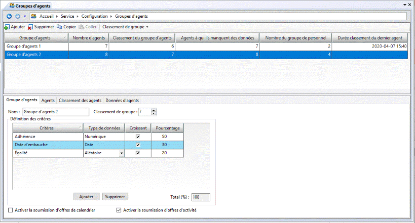 Vous pouvez afficher les agents dans les groupes d'agents et les informations associées sur l'onglet Agents, puis filtrer éventuellement la vue. Vous pouvez également modifier l'appartenance de l'agent ou du groupe d'agents et vous pouvez ajouter des groupes d'agents et définir les critères et les types de données à prendre en compte lors du classement.