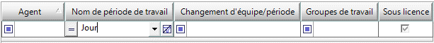 Remarque : les options de menu et les boutons sont activés ou désactivés en fonction de ce que vous êtes en train de faire. Par exemple, si vous modifiez une période de travail, le bouton Ajouter est désactivé. Si vous attribuez des agents dans la période de travail et si vous cliquez avec le bouton droit de la souris sur un agent déjà associé à la période de travail, le bouton Déplacer les agents sélectionnés vers la période de travail actuelle est désactivé.