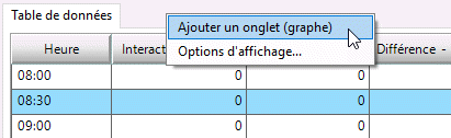 En regard de l'onglet Table de données, cliquez avec le bouton droit et sélectionnez Ajouter un onglet (graphe) dans le menu qui apparaît.
