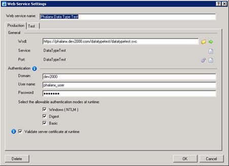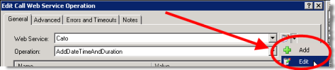 Use the Web Service Settings dialog box (see figure) to edit a web service definition that you previously created for your process.