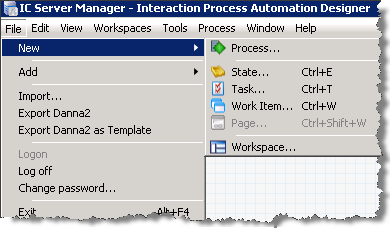 Note: If you have not previously created any processes, you might need to create a view in the IPA Designer workspace before creating your first process.