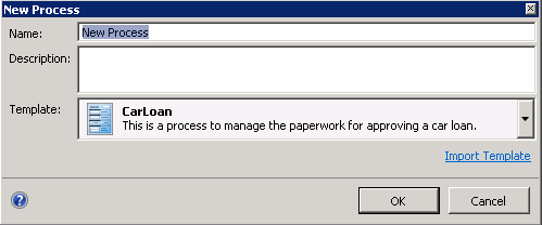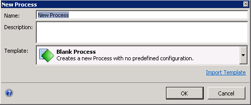 The New Process dialog box appears. The Template field displays the icon, name, and description for the template that you selected.