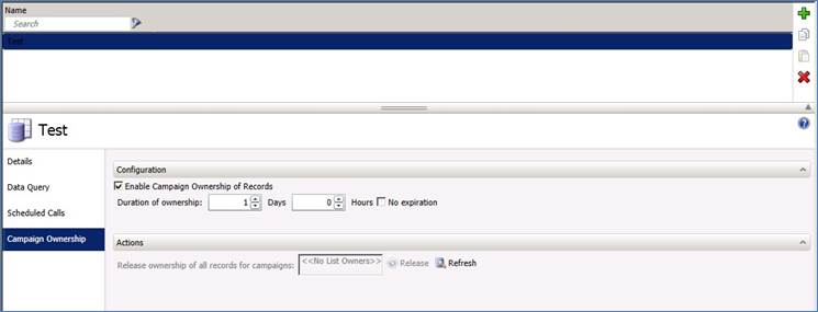 On the Campaign Ownership tab in the Contact List view, an administrator can configure options to ensure that multiple campaigns do not dial the same contact on a shared contact list during a configurable period of time. This is useful if multiple campaigns simultaneously use the same contact list. The first campaign to dial a number gets ownership of that record. Dialer denies access to any other campaigns that attempt to access that record.