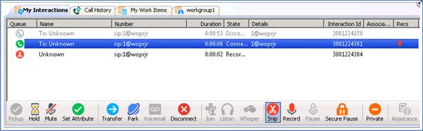 A new snippet recording feature in Interaction Recorder provides the option to initiate recording of a portion of a call or chat. This is useful when there is a need to record only a segment of a conversation, such as for the confirmation of a transaction request.
