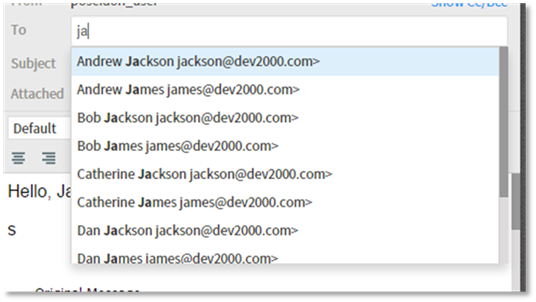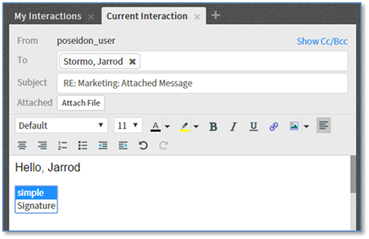The email form also includes the ability to resolve contacts automatically as the user types in the To, CC, and BCC fields. This ability reduces the time it takes to respond to an email interaction.
