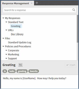 Response management also includes the ability to use macros. Macros allow information to be filled in dynamically when the response item is chosen, reducing the overall number of response items that you need to create.