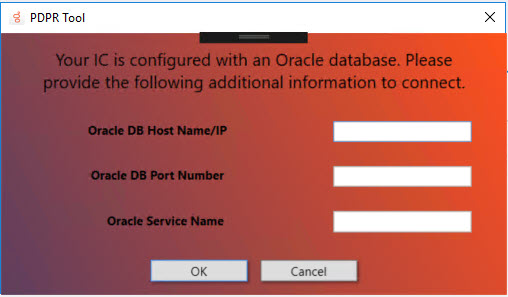 For sites using Oracle, the CIC Administrator or the DBA must also provide the Oracle database host name or IP address, the Oracle database port number, and the Oracle service name.