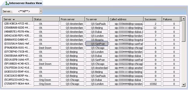 This view shows routes on a monitored server used to place inter-server calls between CIC servers.