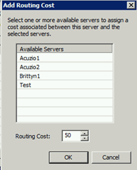 On the Routing Cost tab, click a server and then click Edit. The Edit Routing Cost dialog box appears.