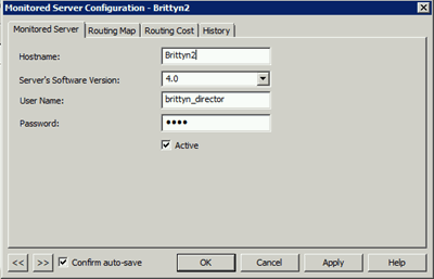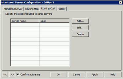 Routing Cost: Numeric value (from 1 to 100) used to weight the relative cost of routing to other Monitored Servers. The default value is 50 for any server not assigned a specific value. Higher numbers signify more costly routing.