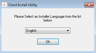 In theSetup.exe screen, select English from the drop down list and click OK.