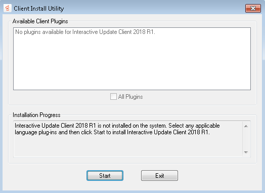 Interactive Update Client 2015 R3 is not installed on the system. Select any applicable language plug-ins and then click OK to install Interactive Update Client 2015 R3.