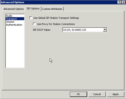 Clear the Use Global SIP Station Transport Settings check box. The SIP DSCP Value box is available.