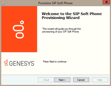 This page allows you to provision the SIP Soft Phone using the provisioning IVR. The wizard initiates a call to the CIC server to do the provisioning. The server then generates the appropriate configuration and triggers the SIP Soft Phone to retrieve its new configuration.