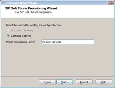 Configure Settings: If selected, displays the Phone Provisioning Server box to allow you to specify the provisioning server. If the configuration file is not available or an error occurs during automatic discovery, you can select this option to load configuration information manually.