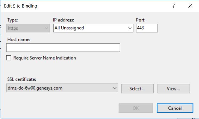 5. In the SSL certificate list, select the certificate you previously created or imported and then Click Ok.