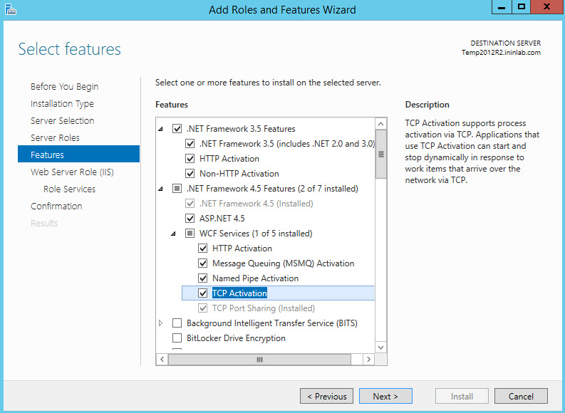 - .NET Framework 3.5 Features and select HTTP Activation and Non-HTTP Activation.