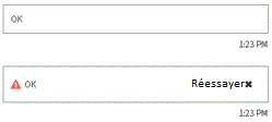 Une flèche de progression s'affiche pendant que PureConnect envoie vos messages. Elle disparaît lorsque le message a été envoyé. Si le message n'est pas envoyé dans un délai d'attente limite, vous avez la possibilité de réessayer. Si PureConnect détecte un message en double ou une autre erreur, vous pouvez renvoyer le message ou le supprimer.