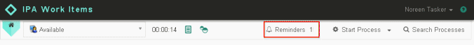 When you log on, any reminders for work items in your queue appear automatically in the Reminders dialog box.