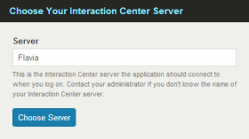 If your organization uses more than one IC server, in the Choose Your Interaction Center Server dialog box, type the name of the appropriate IC server in the Server text box. Click Choose Server.