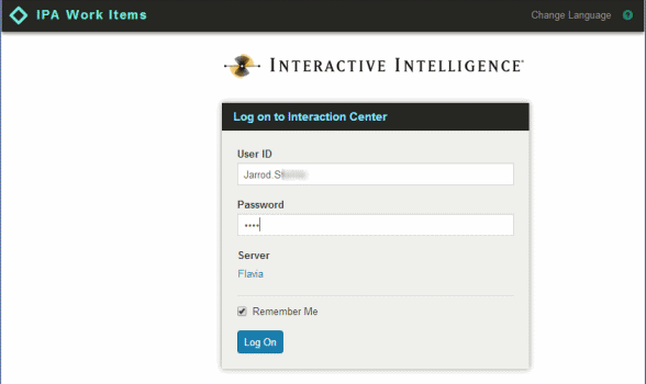 Result: You log on to Customer Interaction Center. Your CIC user name appears in the IPA Work Item Client Application Bar. Other CIC users can view your user status and logon state in any CIC client Company Directory view.
