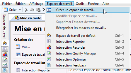 Remarque : Les espaces de travail intégrés ne peuvent pas être supprimés.