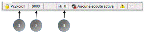 La barre des statuts, située en bas de la fenêtre, est composée de sections affichant votre statut de connexion actuel, le nom du serveur, le nom de la station, les messages liés aux applications sous licence (p. ex. le nombre de demandes d’assistance) et d’autres informations.