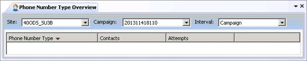 This view displays Phone Number Type summary statistics for the site, campaign and interval selected.