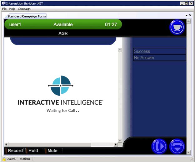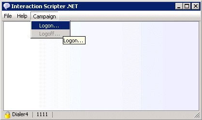 The client will display a blank page, because you are connected to the CIC server, but have not logged into any campaigns yet. Pull down the Campaign menu and select Logon.