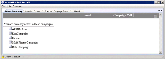 The tab for each campaign will display the script for a campaign call, or a page that indicates you are waiting for a call: