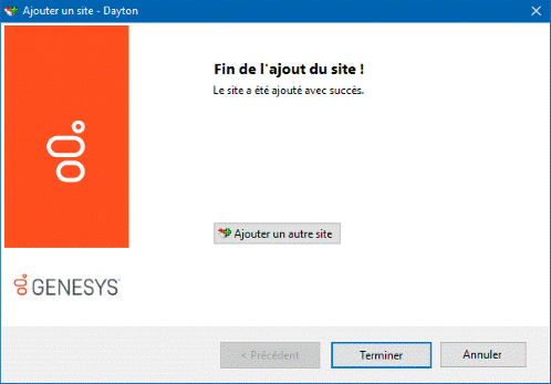 Résultat : l'écran « Fin de l'ajout du site ! » apparaît.