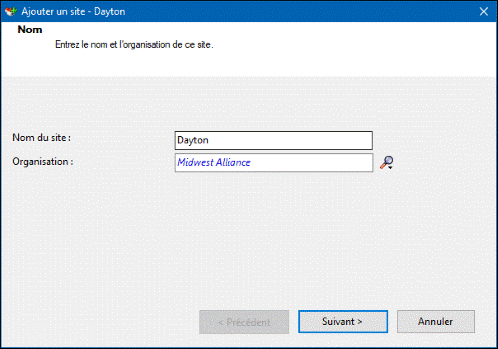 - Une fois le nom de l'emplacement et le nom de l'organisation spécifiés, cliquez sur Suivant.