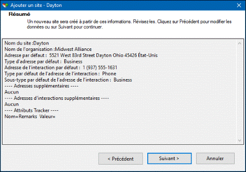 Recherchez un contact Tracker. Dans la page Résultats de la recherche de l'assistant Rechercher un contact, cliquez avec le bouton droit sur le nom du contact, puis sélectionnez Propriétés. Dans la boîte de dialogue Propriétés du contact, dans la zone de texte Organisation, sélectionnez une Organisation. Cliquez sur la commande Rechercher en regard de la zone de texte Emplacement. Dans la liste déroulante, sélectionnez Ajouter un nouveau site.