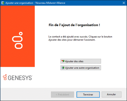 Résultat : la page « Fin de l'ajout de l'organisation ! » apparaît.
